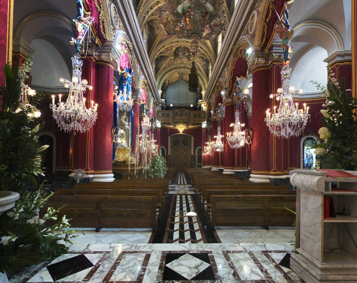 Between 1954 and 1978, the church underwent major improvements. The floor was covered with marble paving, and the roof was gilded. Since the cradle held by the titular statue had been destroyed during the war, a new one was crafted by Joseph Galea from Luqa. This work, made of African nuts and bronze, was based on a design by Carmelo Tonna from Rabat.